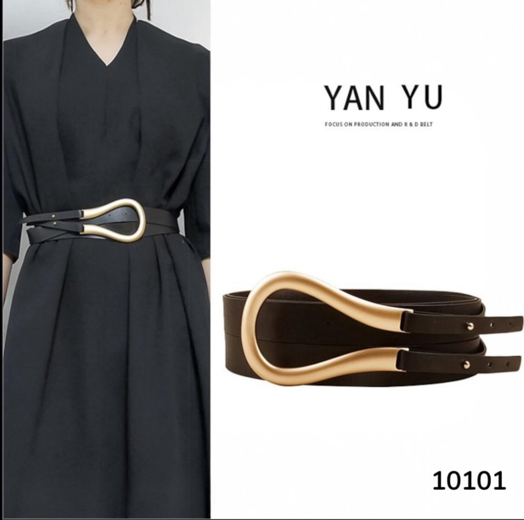 פרטי מוצר חגורת נשים עם אבזם מתכתי מעוצב בצבע זהב